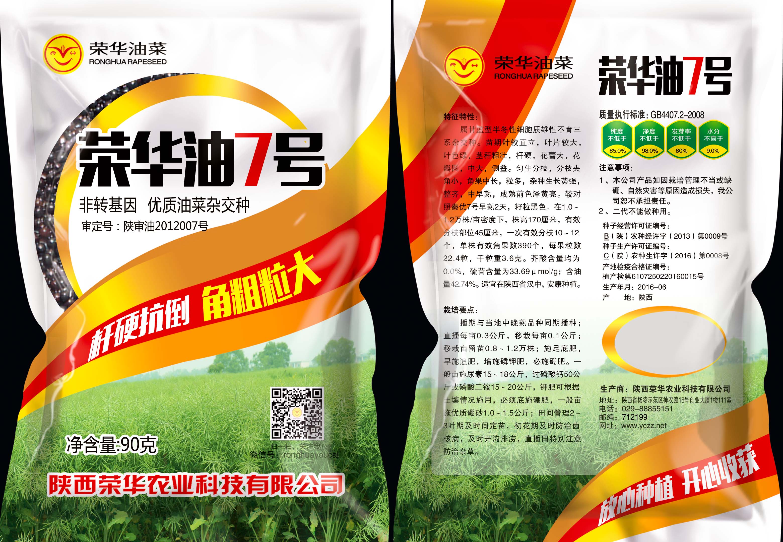 榮華油7號(審定編號:陜審油2012007)是陜西榮華農(nóng)業(yè)科技有限公司自主選育的甘藍型、半冬性細胞質(zhì)雄性不育三系雜交種,適宜在陜西漢中、安康和生態(tài)類型相似區(qū)域種植。該品種分枝部位低、分枝數(shù)多、分枝夾角小、株型緊湊、適合密植和機械化收割,抗倒性強,中抗菌核病,是目前生產(chǎn)上輕簡化栽培的最優(yōu)品種之一。